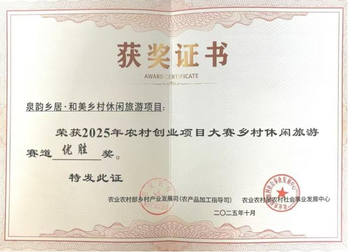 近日,2025年农村创业项目大赛全国总决赛在湖南长沙顺利举行,山东文旅山乡集团打造的“泉韵乡居·和美乡村休闲旅游项目”——济南天上的街市乡村旅游度假区作为大赛乡村休闲旅游赛道山东省唯一参赛代表,荣获“优胜奖”。