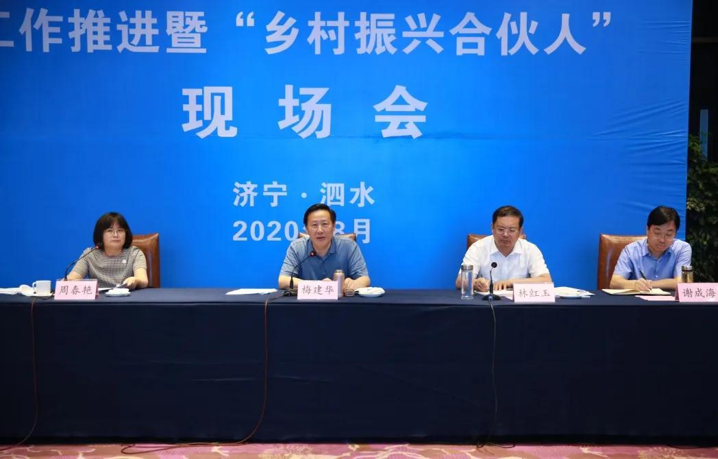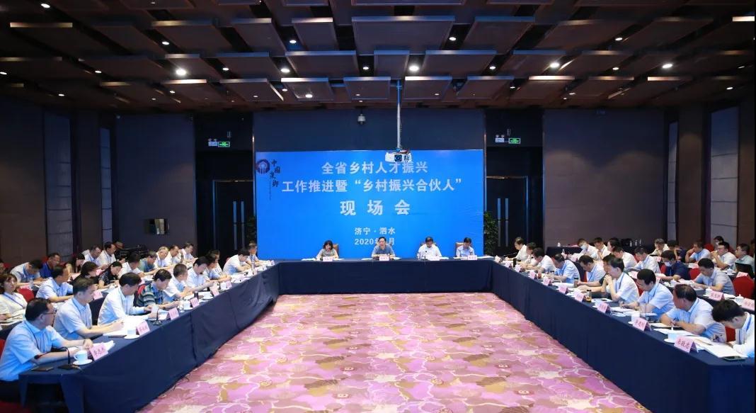 8月25日,山东省乡村人才振兴工作推进暨“乡村振兴合伙人”现场会在济宁市泗水县召开。会议深入学习贯彻习近平总书记关于乡村人才振兴的重要指示精神,实地观摩“乡村振兴合伙人”试点情况,交流总结乡村人才振兴工作情况,安排部署下步重点任务。山东省委组织部副部长,省人力资源社会保障厅党组书记、厅长,省乡村人才振兴工作专班办公室主任梅建华出席会议并讲话。山东省人力资源社会保障厅党组成员、副厅长周春艳主持会议。