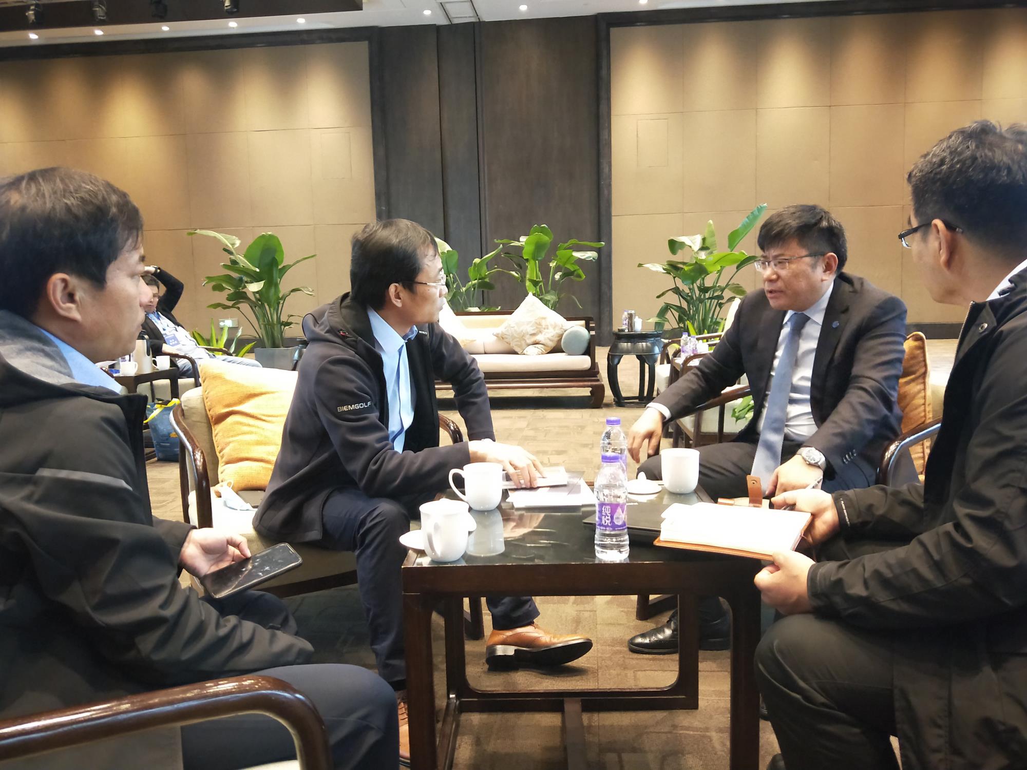 与良业科技集团股份有限公司董事长梁毅(左一)洽谈交流。