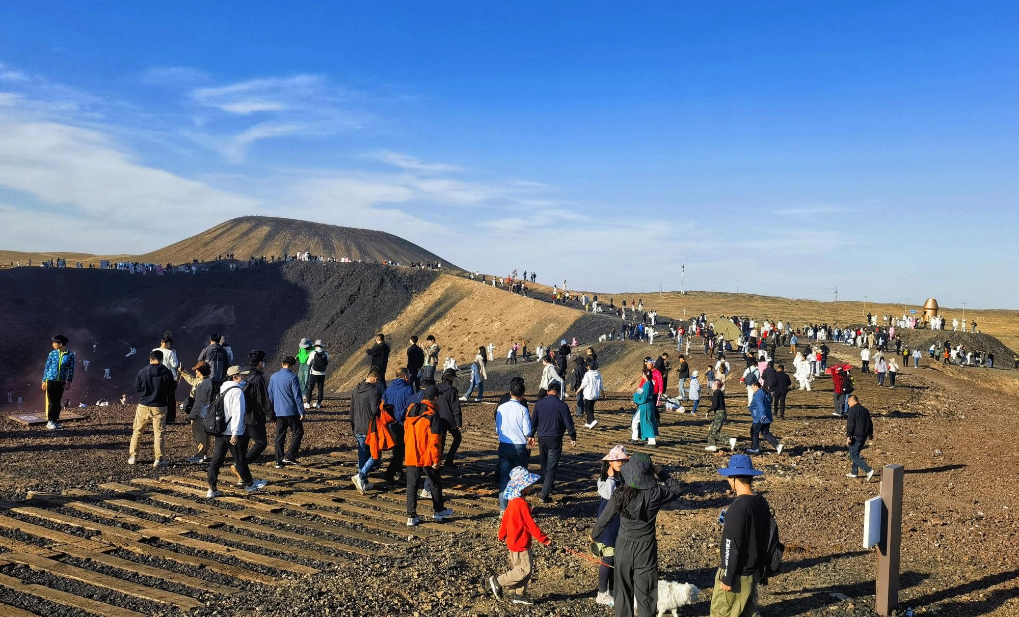 神秘火山,辽阔草原。内蒙古乌兰察布火山景区假期火爆开业,来自全国各地的游客络绎不绝,除了登火山、观草原、穿宇航服放彩烟,还有各种蒙古族特色活动,在广袤原野尽情释放压力,享受生活美好。