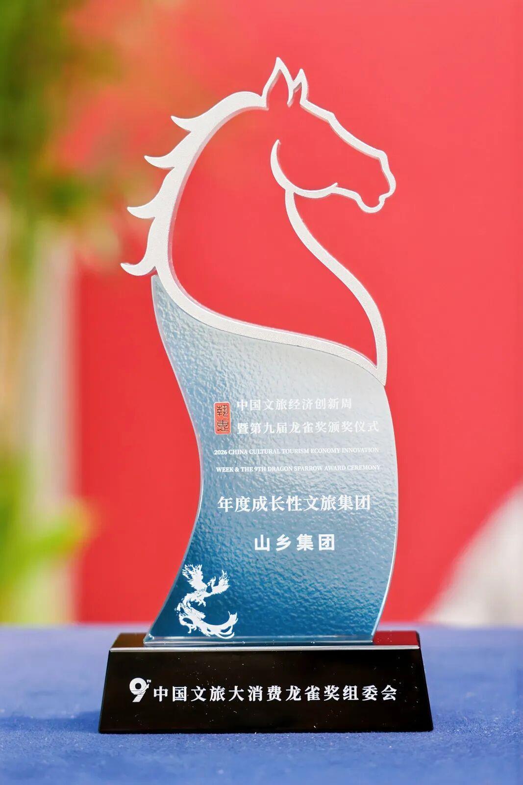 4月9日,2026中国文旅经济创新周暨第九届龙雀奖颁奖仪式在浙江宁波举办。山东文旅山乡集团获评龙雀奖“年度成长性文旅集团”荣誉称号。